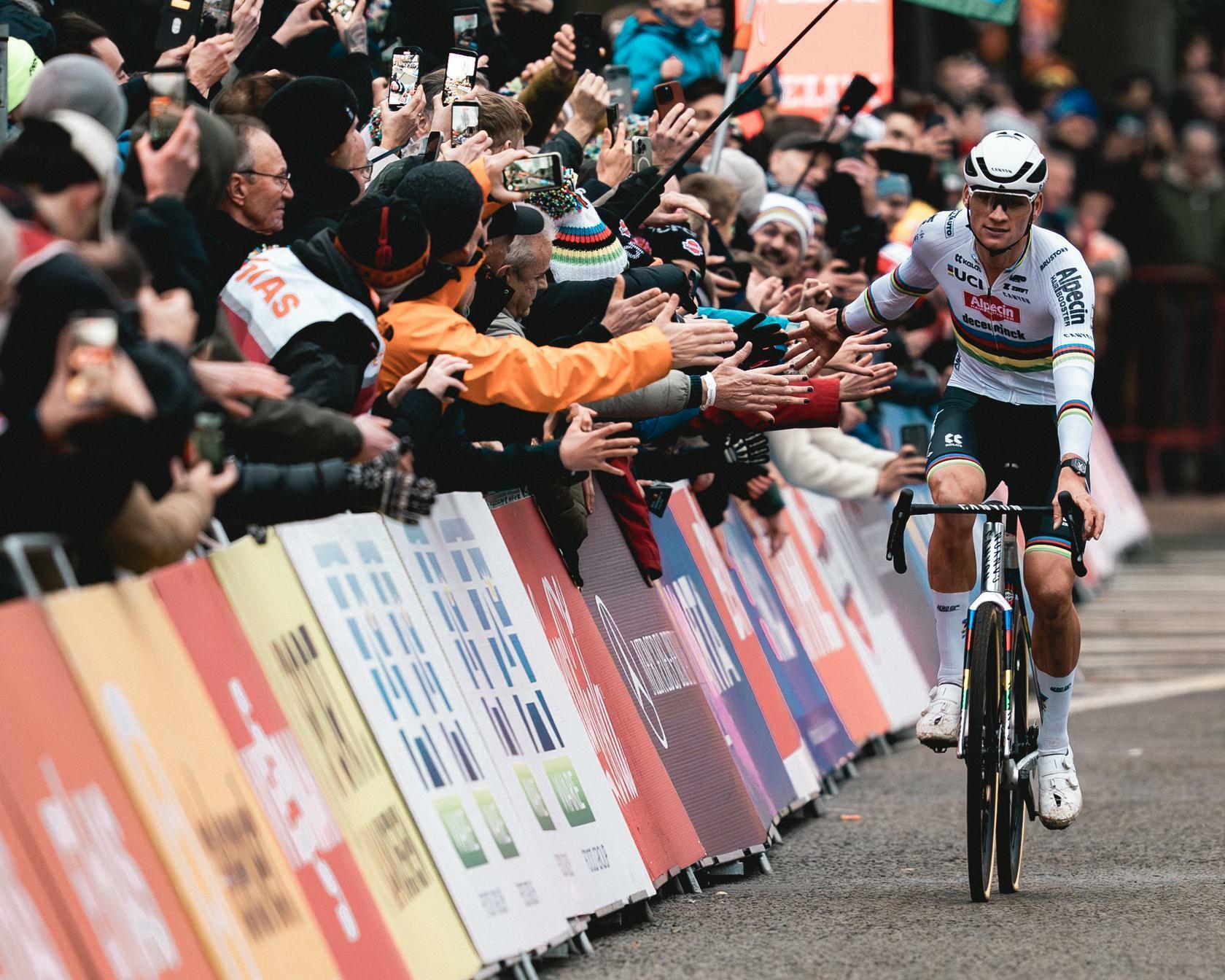 Although nothing seemed able to stop Van der Poel from winning today, the world champion himself suffered a flat tire. His lead was large enough to allow for a smooth bike change, leaving him roughly 30 seconds ahead of his nearest chaser, Sweeck.