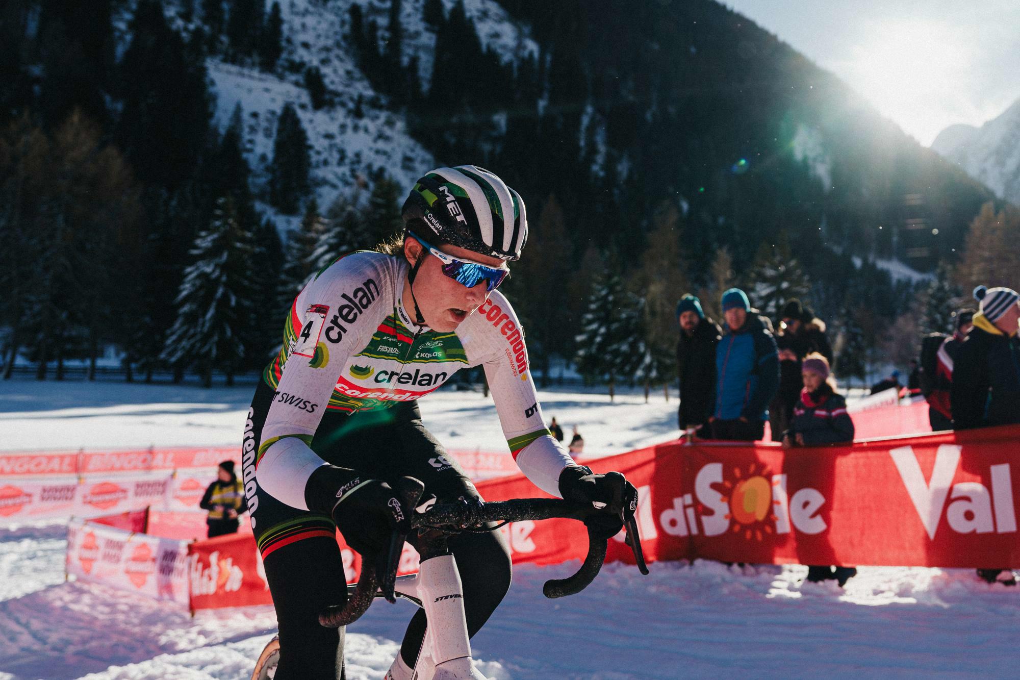 Bakker, troisième à Val di Sole l’an dernier, survola littéralement le dernier tour. Elle remporte à Vermiglio la toute première victoire en Coupe du Monde Cyclo-cross UCI de sa carrière. Alvarado termine finalement deuxième à 23 secondes et Pieterse troisième à 1 minute 35.
