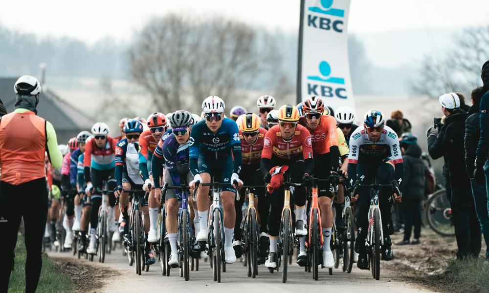 Alors que Tarling et l’échappée étaient rattrapés, Visma – Lease a Bike a profité de la Berendries pour faire le saut vers le premier groupe. Un petit groupe comprenant Van Aert, Benoot et Tratnik s'est détaché du groupe de poursuivants. À 29 km de l’arrivée, les favoris se sont regroupés sur l’Elverenberg-Vossenhol. Arnaud De Lie a payé les efforts de sa poursuite après son incident mécanique et a dû laisser partir le groupe de tête.
