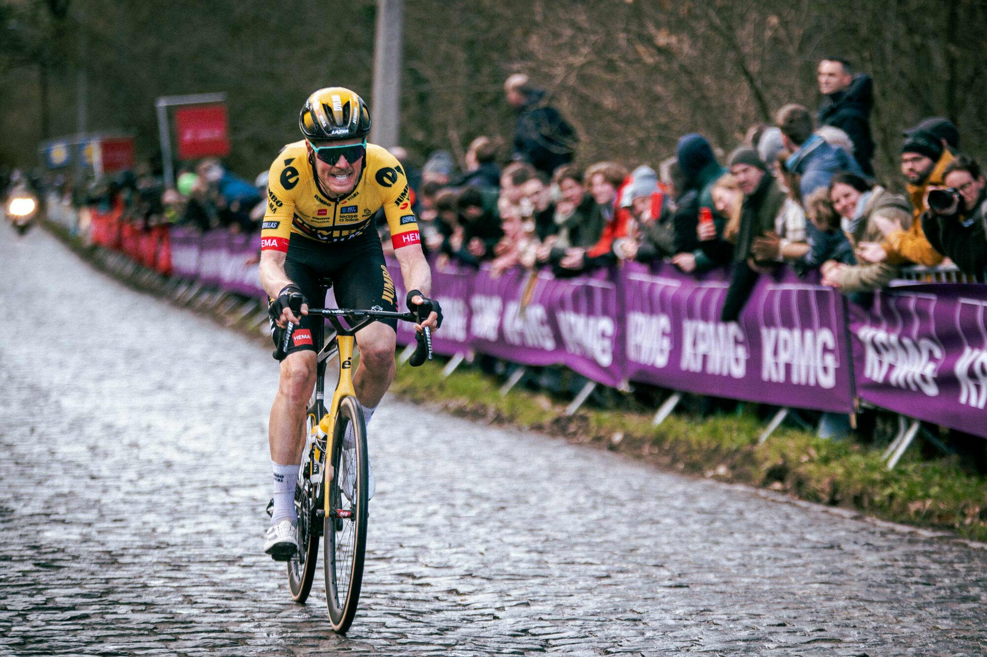 Van Baarle était devenu le grand favori pour la victoire finale, mais la Bahrain Victorious tenta d’inverser la tendance. À l’approche du Mur de Grammont, l’avance des deux coureurs de tête s’élevait à 40 secondes. Dans les Vesten, Le Berre dut renoncer. Van Baarle se lança alors en solitaire dans l’ascension du Mur. Au sein du peloton, Wellens haussa le rythme. Avec Mohoric (Bahrain Victorious), il partit à l’assaut de Van Baarle. De Lie, avec Laporte (Jumbo-Visma) dans sa roue, accéléra lui aussi dans le Mur de Grammont. Un groupe de quatre partit ainsi à l’attaque de Van Baarle.