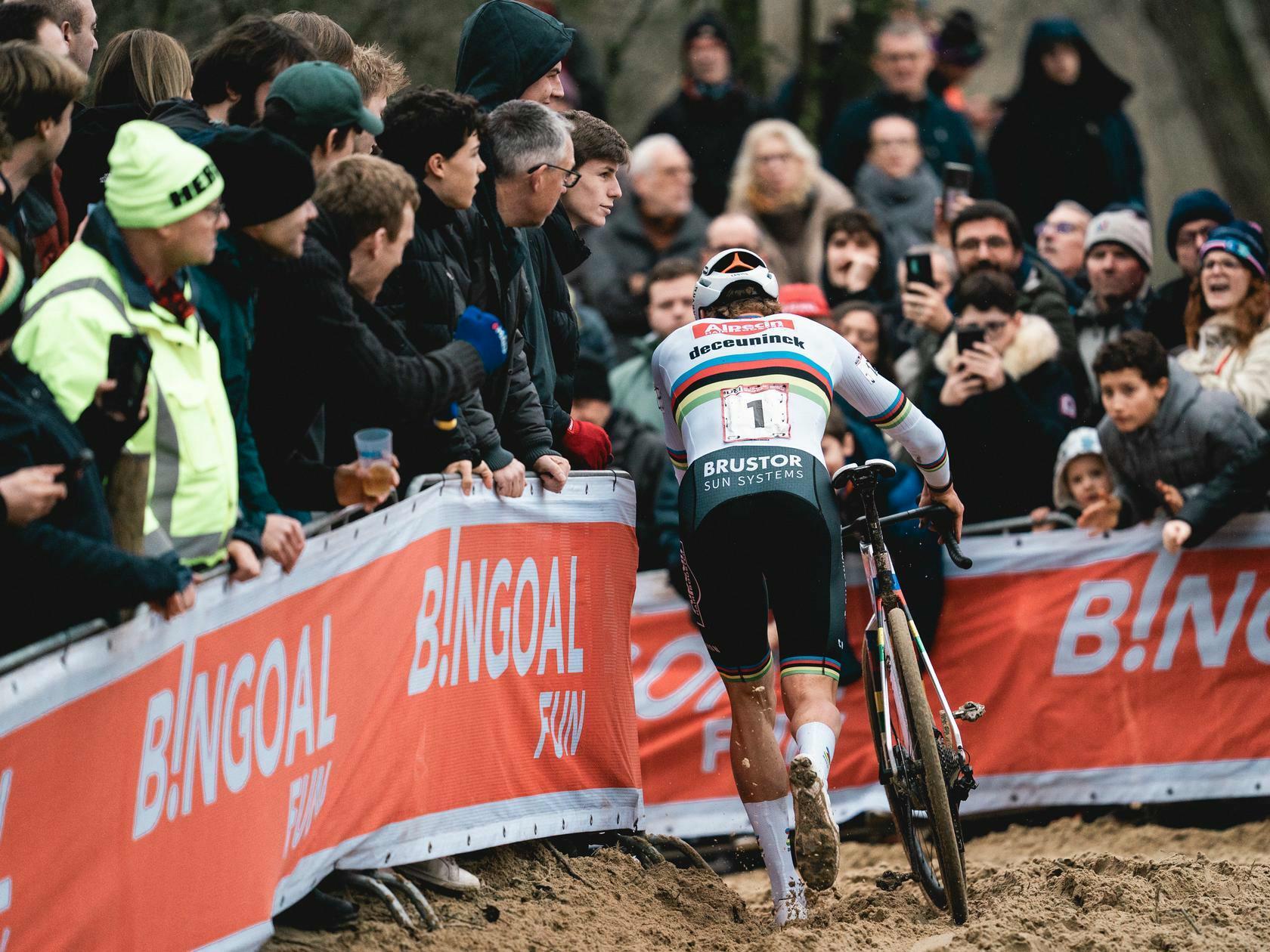 Les erreurs dans le sable étaient toujours possibles. À la fin du troisième tour, seuls trois coureurs restaient en tête : Vandeputte, Del Grosso et le champion du monde. C’était le moment pour Van der Poel de secouer le peloton une dernière fois. La solo était lancée. À la fin du tour, Van der Poel comptait déjà 20 secondes d’avance sur Del Grosso, Vandeputte et Sweeck.