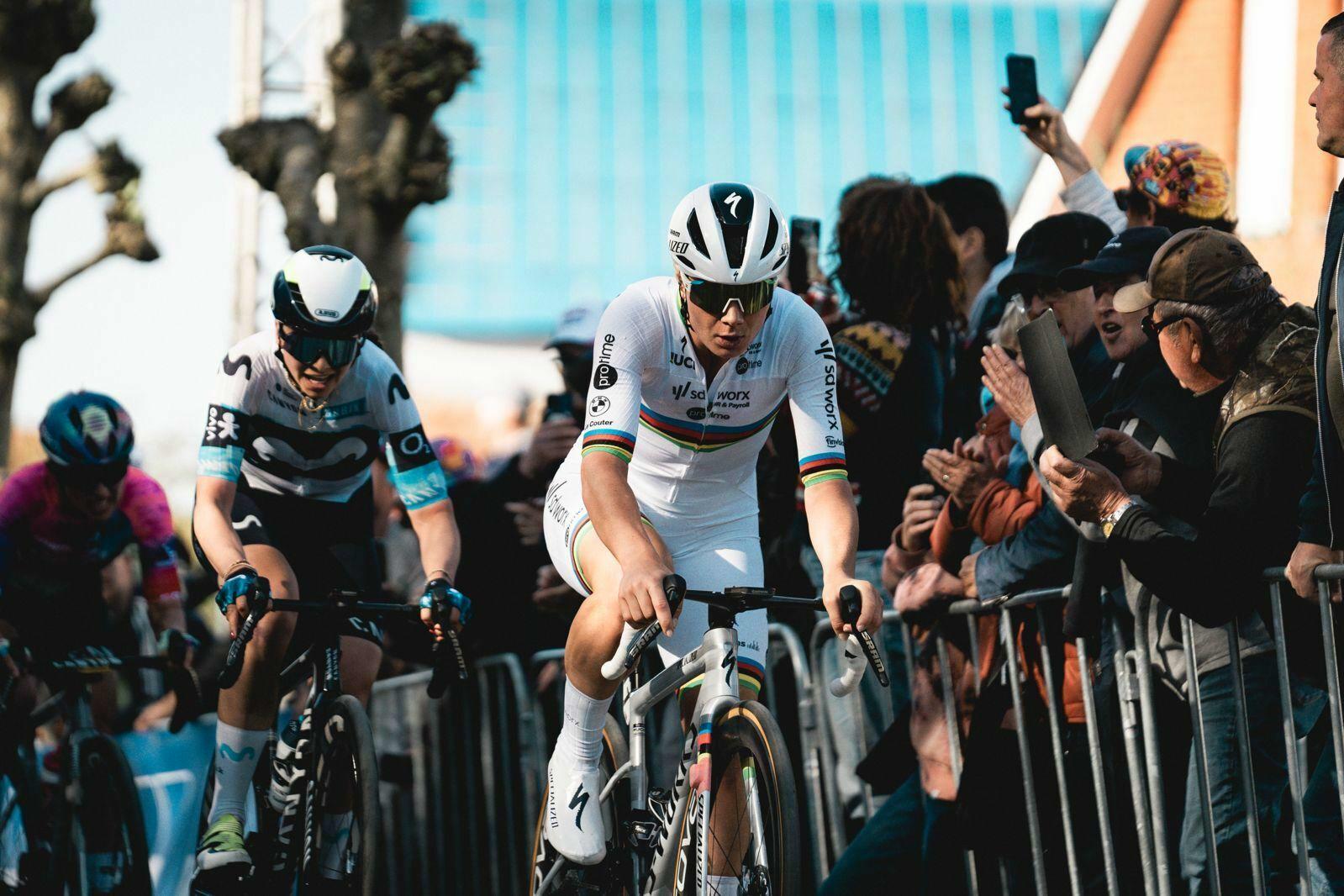 In volle finale ging het mis voor Chabbey (FDJ-Suez). De schaduwfavoriete stuurde verkeerd een bocht in en viel samen met Ferrand-Prévot, maar beiden konden terugkeren. Even later plaatste Lippert een aanval op de Oude Kruisberg, Kopecky en de rest van de favorieten moesten het gat dichten. De groep der favorieten vertoonde breukjes, met onder meer Vos en Brand bij de gelosten. Richting het duo Oude Kwaremont – Paterberg bepaalde Bredewold (Team SD Worx – Protime) het tempo in dienst van de wereldkampioene.